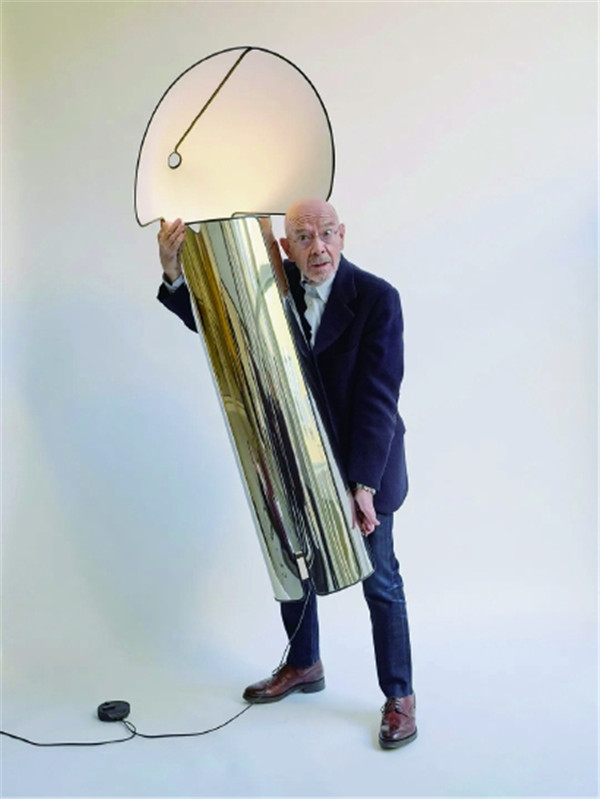 贝里尼携2020年更新版查尔拉落地灯 这是他在1961年完成的作品,这个时代,正是意式设计高歌猛进的当口,也赋予了像贝里尼这样的设计新锐发挥才华的空间。在打造查尔拉落地灯时,贝里尼以玩折纸游戏的手法,将一整块抛光的不锈钢薄板切割后卷成圆筒状,通过反射和漫射巧妙地隐藏了放置在地面的光源。有评论人曾以“修女的头巾和面纱”比喻查尔拉,但贝里尼更乐意听到别人将其称为“发光大蘑菇”。