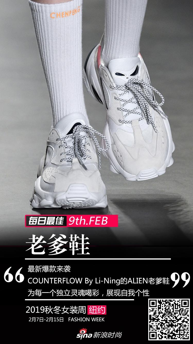 得票率:5.13% 老爹鞋在时装周简直是人脚一双。最新爆款来袭,COUNTERFLOW By Li-Ning的ALIEN老爹鞋,为每一个独立灵魂喝彩,展现自我个性! 时装周街拍